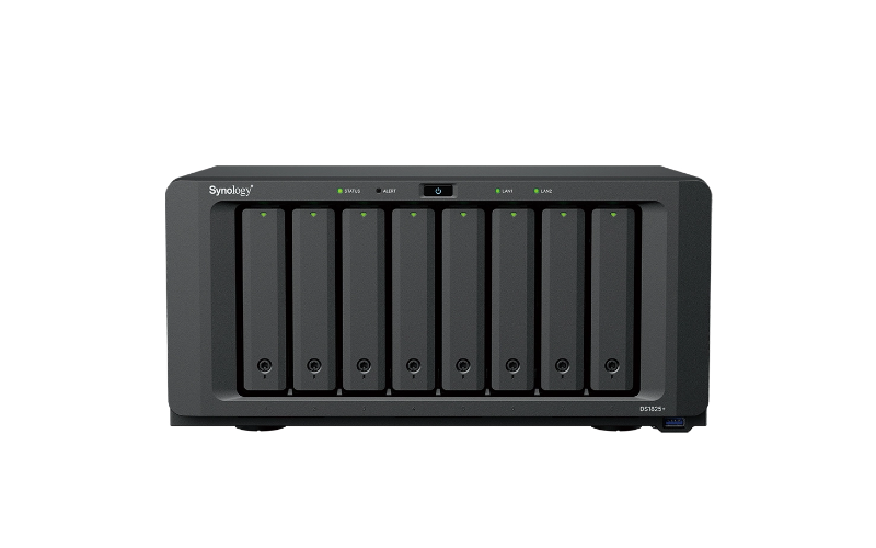 DS1825+是⼀款多功能的 8 托架存储解决⽅案, 旨在存储和保护关键任务数据。灵活⽀持更快的⽹ 络速度和容量扩展,使 DS1825+成为需要可扩展 和可定制存储解决⽅案以满⾜其不断增⻓的数据需求的企业的理想选择。由 Synology DiskStation Manager DSM 提供⽀持,该设备是数据共享、 同步、备份和监控的灵活⼀体化解决⽅案。